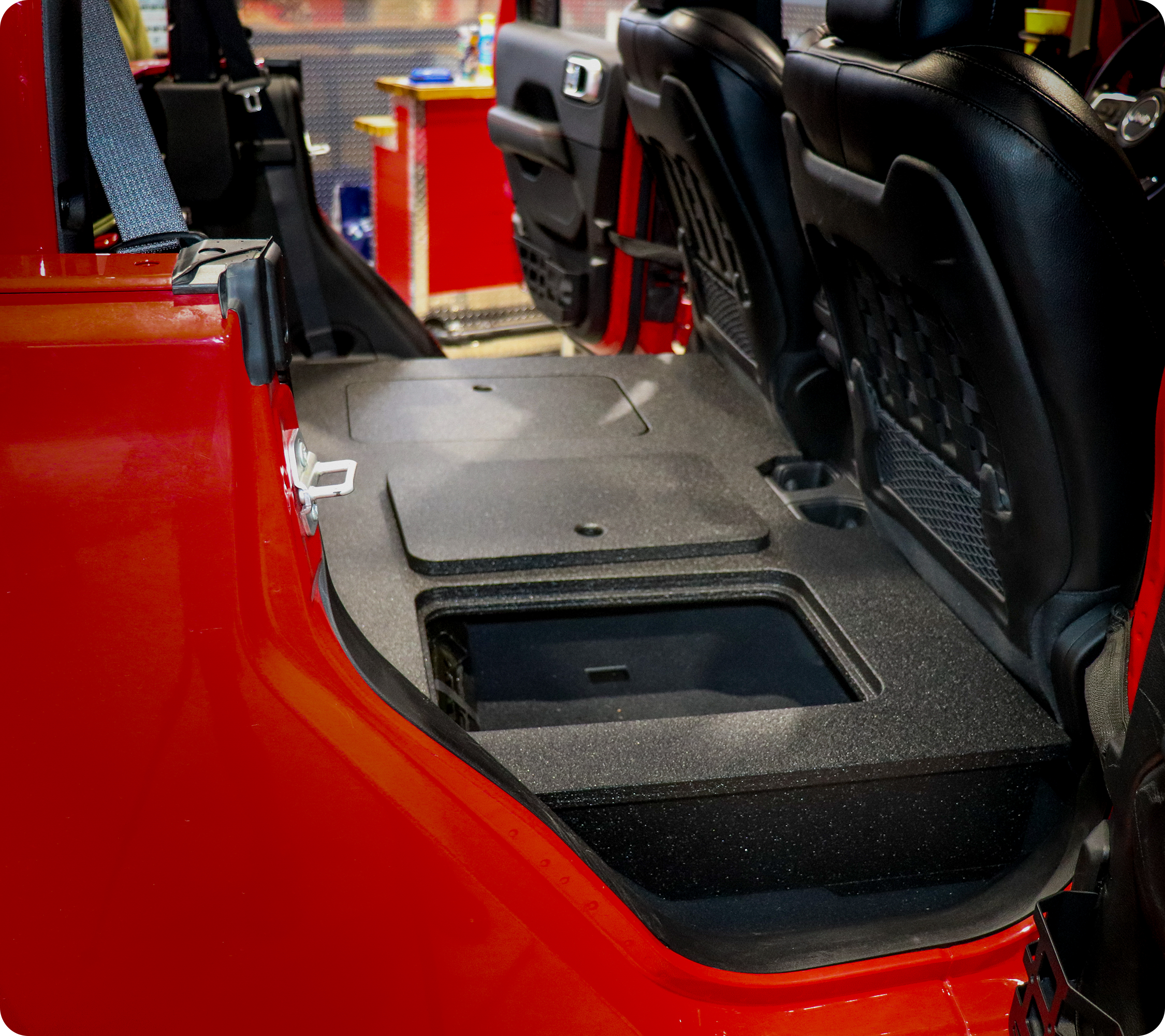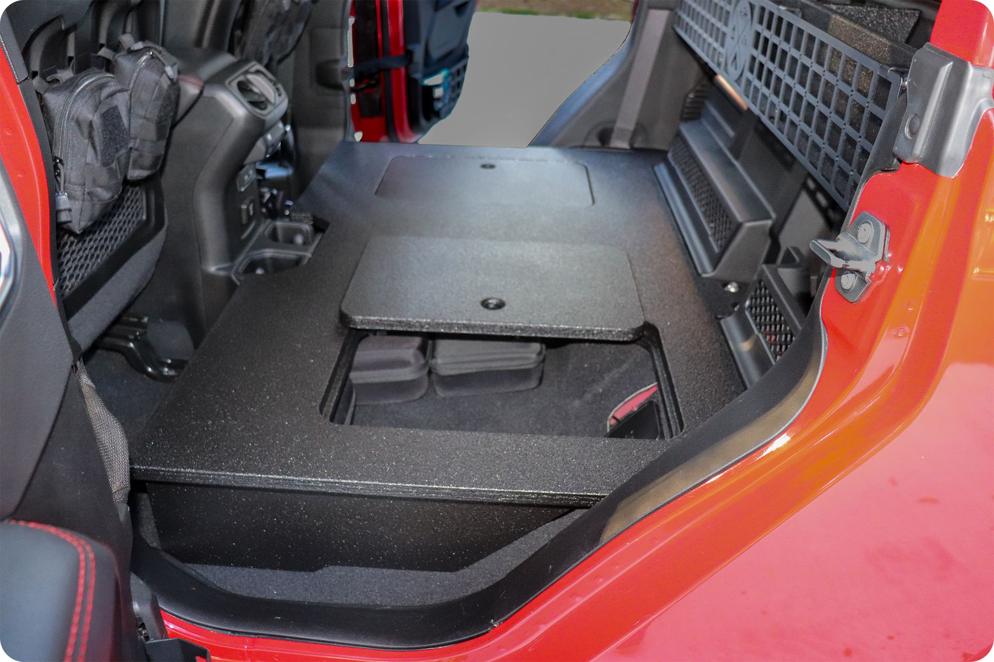 For those who Jeep, we have a full line of backseat delete systems. Additionally, we have shelving units and Molle panels - the perfect combination for any Jeep adventure.